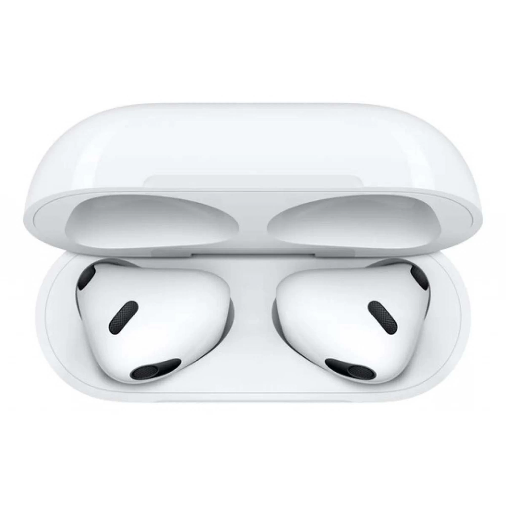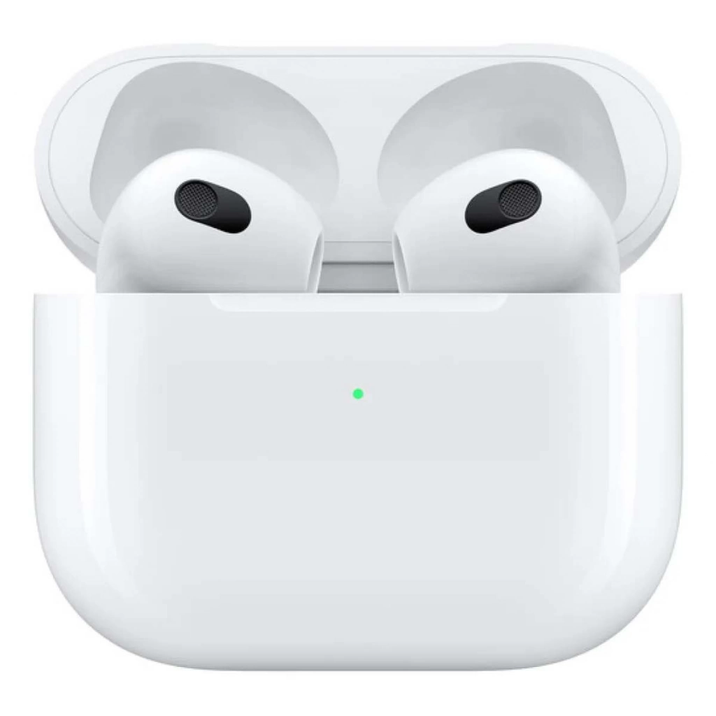 Apple AirPods 3ra generación (MPNY3AM/A) con estuche de carga Lightning, vista frontal, disponibles en Avlis Uruguay.